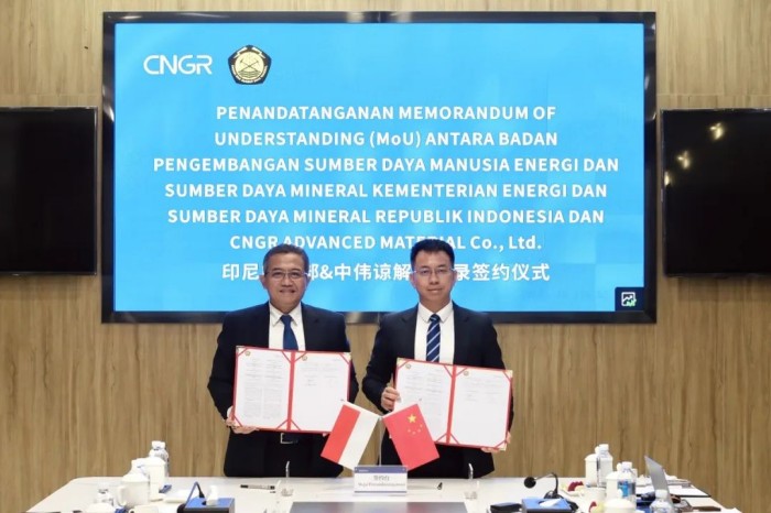 Witnessed by those present, Liu Yi and Prahoro Yulijanto Nurtjahyo signed the “Memorandum of Understanding” on behalf of CNGR and the Indonesian Ministry of Energy and Mineral Resources for further cooperation.