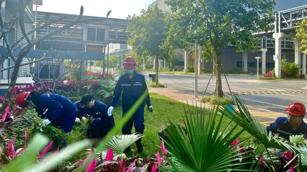 欽州產(chǎn)業(yè)基地200名員工齊聚基地辦公樓旁,大家按部門分成小組,在小組長的帶領(lǐng)下,開展了植樹及為綠植澆水活動,倡議全員爭當(dāng)綠色低碳踐行者。