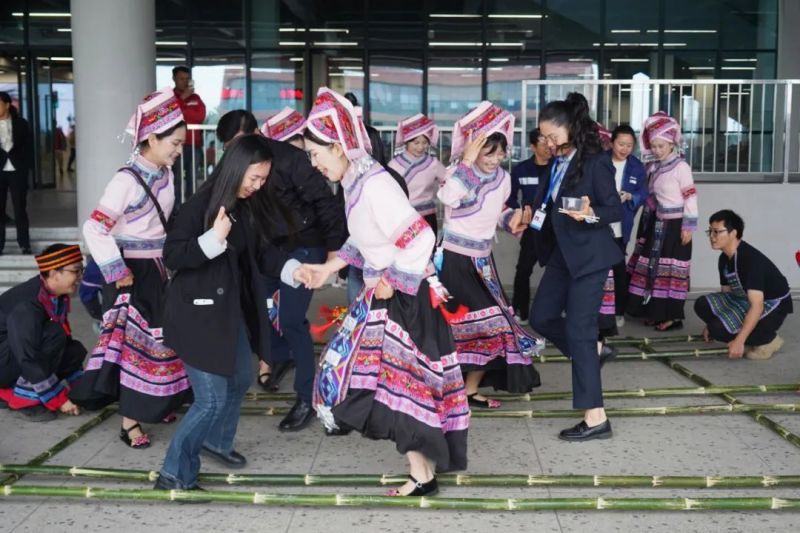 “竹有節,人有志,彼風姿凌美,塑骨氣軒昂”竹竿清脆的敲打聲配合著動感的音樂,在竹竿的分合間,員工們踏著輕盈的步伐翩翩起舞,并邀請現場更多同事一起加入到竹竿舞的隊列中,舞出最美姿態,奏響動聽樂章,用舞動的旋律書寫中偉人熱情活潑、積極向上的精神風貌。
